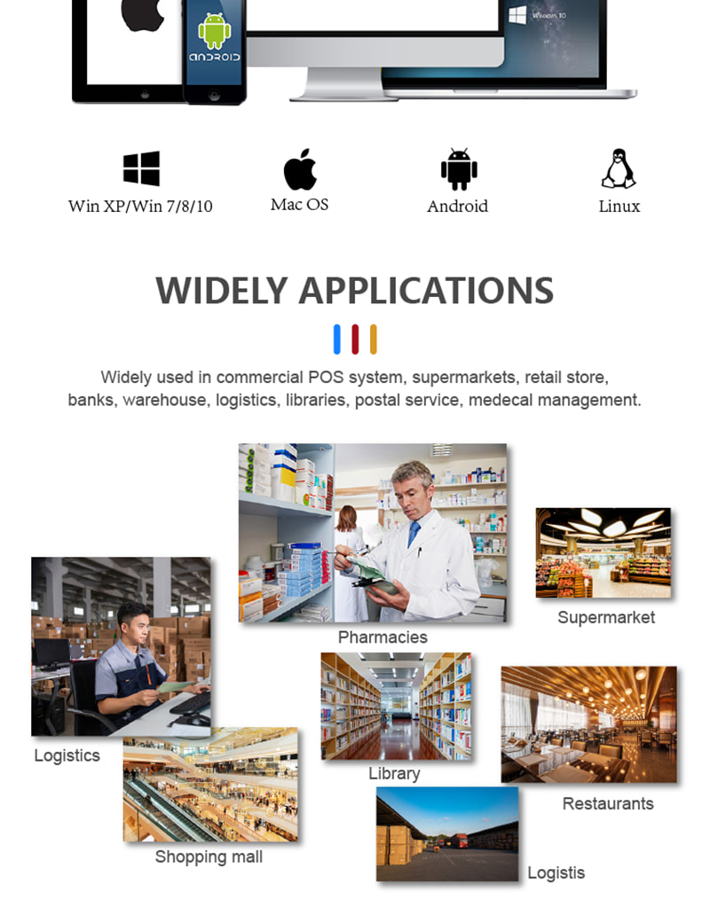 The megapixel CMOS sensor, with a scanning performance exceeding 90% of the scanners on the market, can read all types of barcodes, whether they are micro barcodes, or fuzzy, damaged, folded barcodes, which can be easily read.
